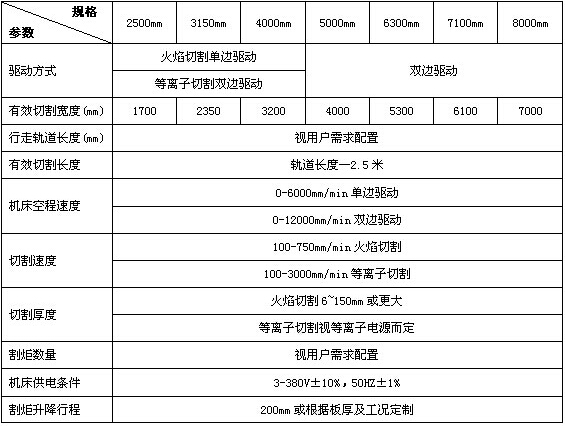 雙頭火焰切割機主要技術參數(shù):